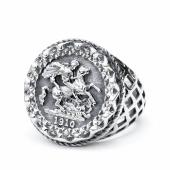 Sculpt Rings™ Vintage Coin Ring – 1910 St. George, Gothic Stainless Steel Signet