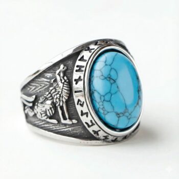 Sculpt Rings™ Viking Wolf Ring – Turquoise Gemstone, Stainless Steel