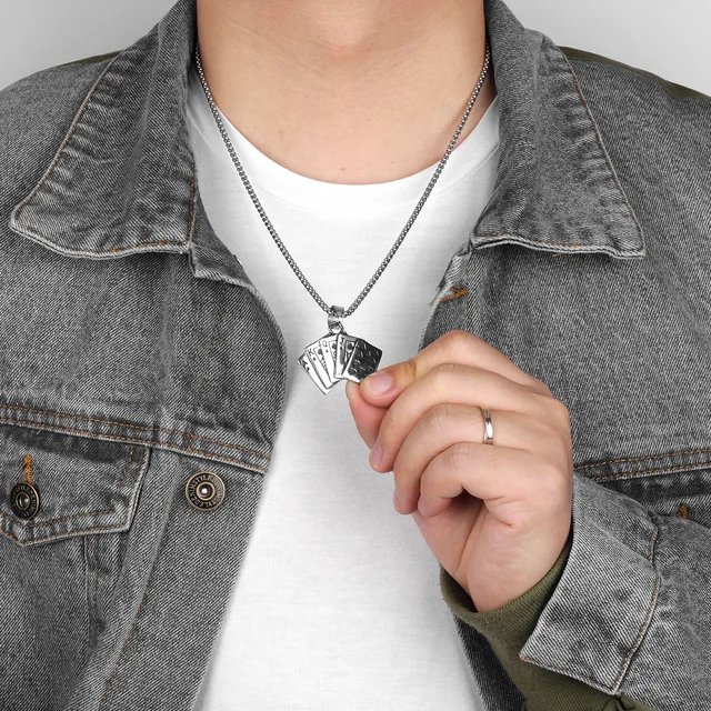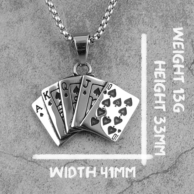 Flush Poker Gambling Long Men Necklaces Pendants Chain Punk for Boyfriend Male Stainless Steel Jewelry Creativity Gift