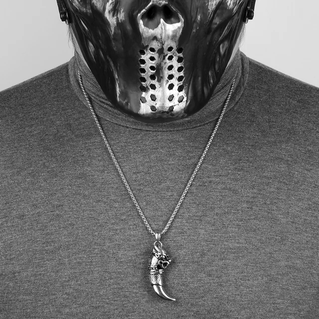 Unicorn Tooth Amulet Mens Long Necklaces Pendants Chain Hip Hop for Boy Male Stainless Steel Jewelry Creativity Gift