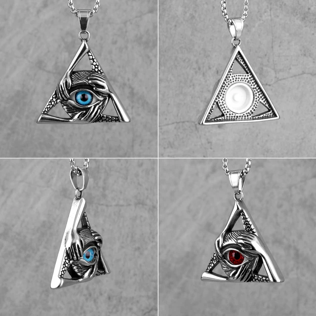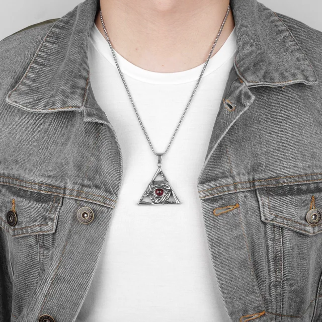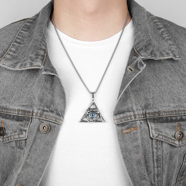 Guardian Eye Triangle Long Men Necklaces Pendant Chain Punk for Boyfriend Male Stainless Steel Jewelry Creativity Gift Wholesale