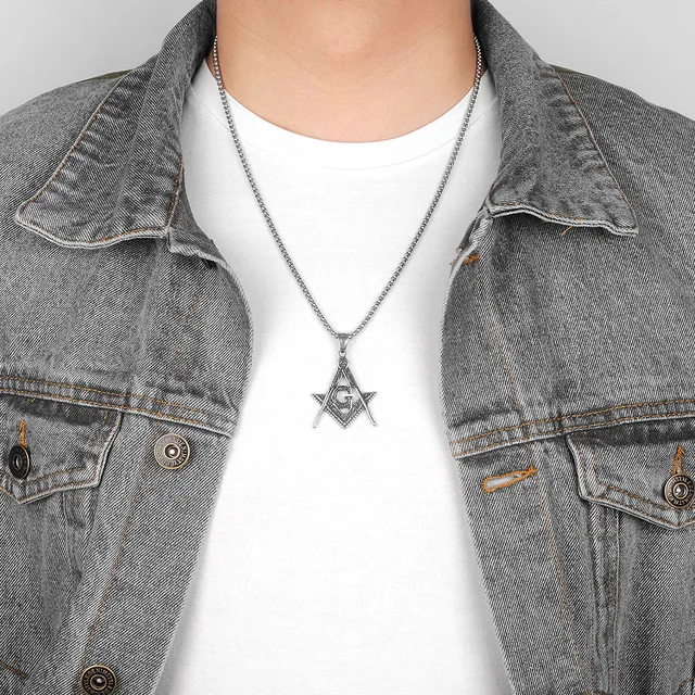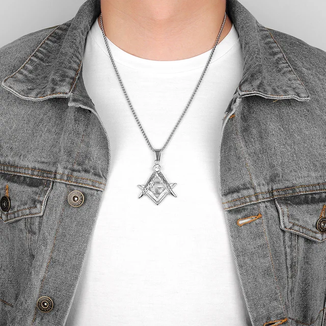 Freemason Masonic Stainless Steel Men Necklaces Pendants Chain Simple Punk for Boyfriend Male Jewelry Creativity Gift Wholesale