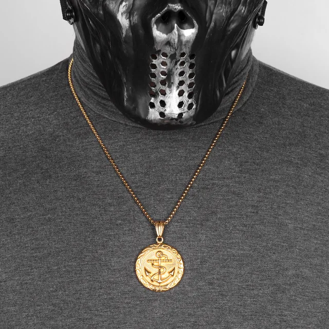Gold Anchor Medals Long Men Necklaces Pendants Chain Punk for Boyfriend Male Stainless Steel Jewelry Creativity Gift