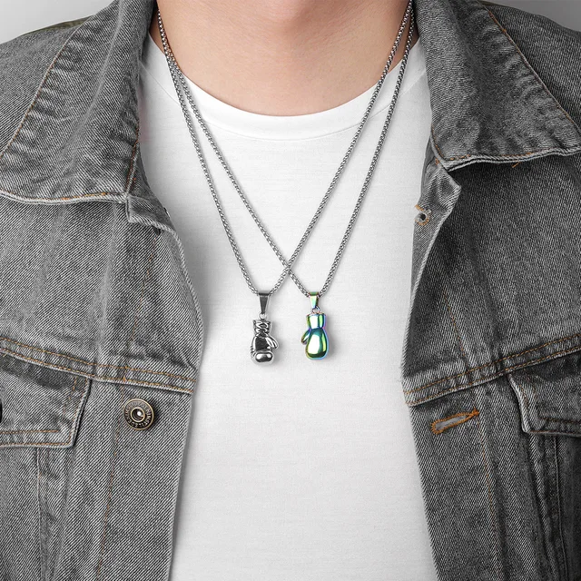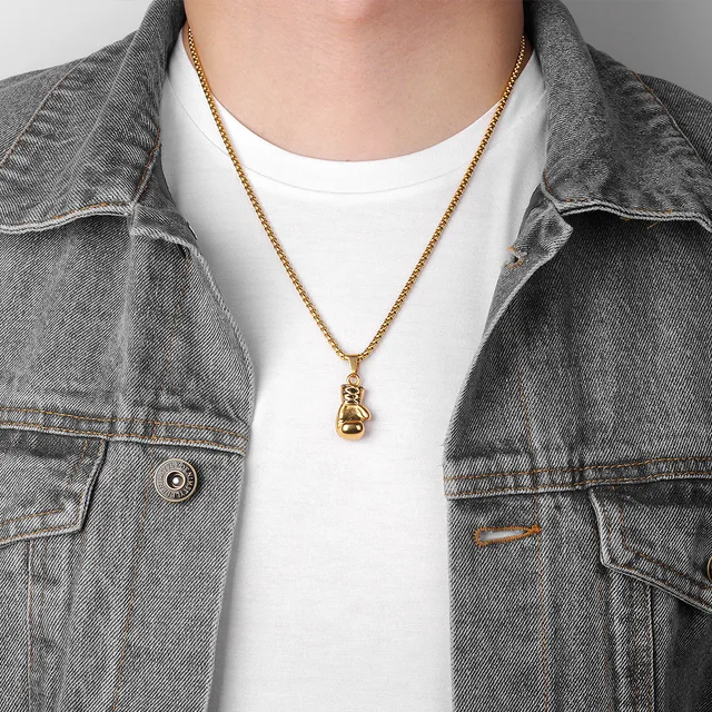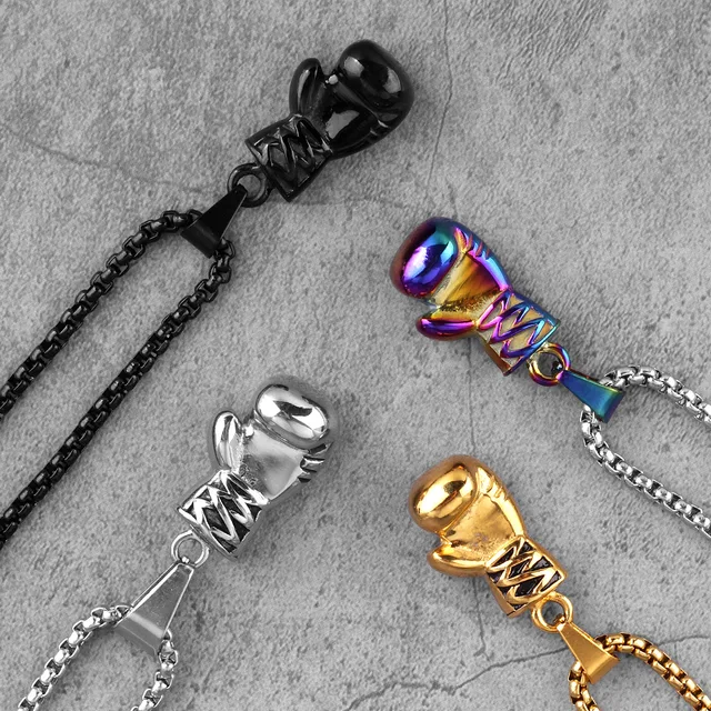 Gold Black Boxing Gloves Boxer Men Necklaces Pendants Chain for Boyfriend Male Stainless Steel Jewelry Creativity Gift