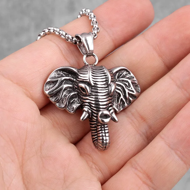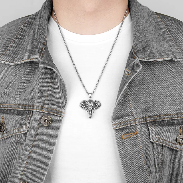 Elephant Animal Long Men Necklaces Pendants Chain Punk for Boyfriend Male Stainless Steel Jewelry Creativity Gift