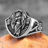 Archangel St.Michael Religion Amulet Stainless Steel Mens Rings Punk for Male Boyfriend Biker Jewelry Creativity Gift