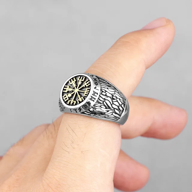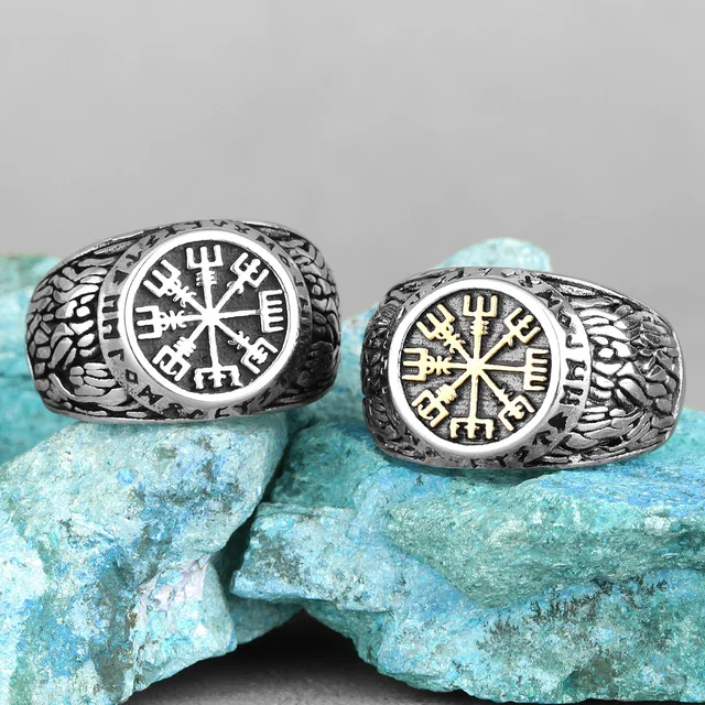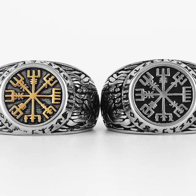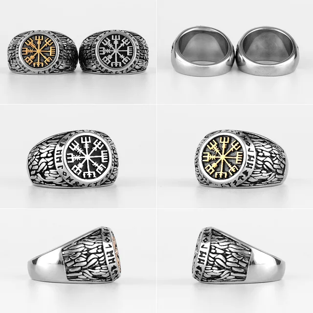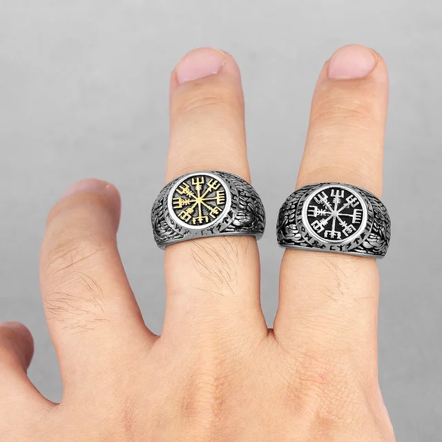 Viking Symbol Odin Myth Rune Stainless Steel Mens Rings Punk Retro for Male Boyfriend Biker Jewelry Creativity Gift Wholesale