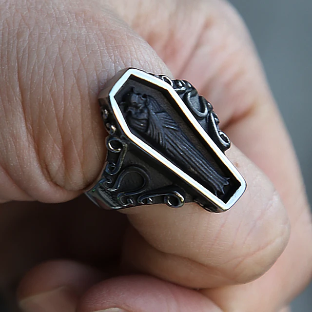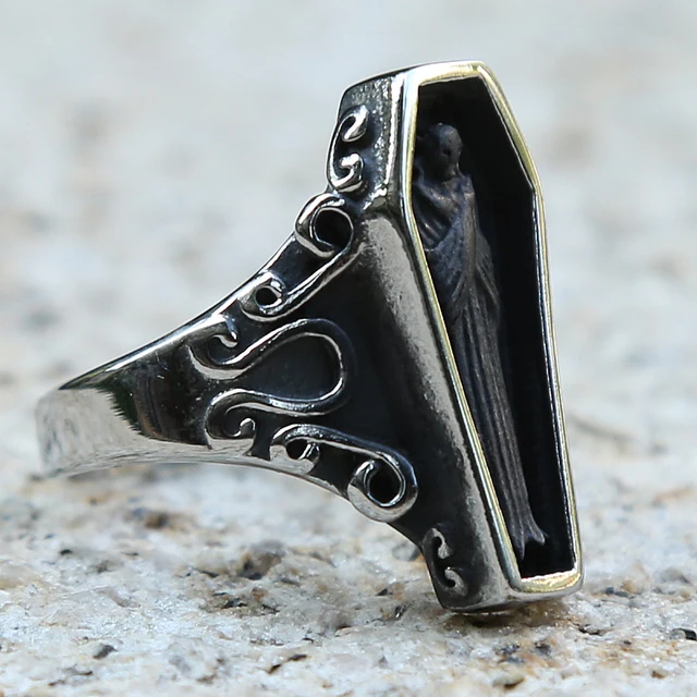 Sculpt Rings™ Gothic Coffin Angel Ring – Dark Stainless Steel Statement Jewelry