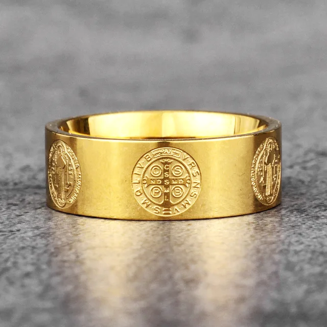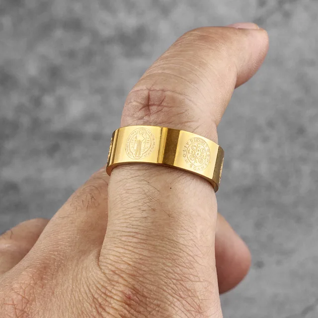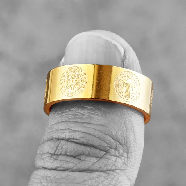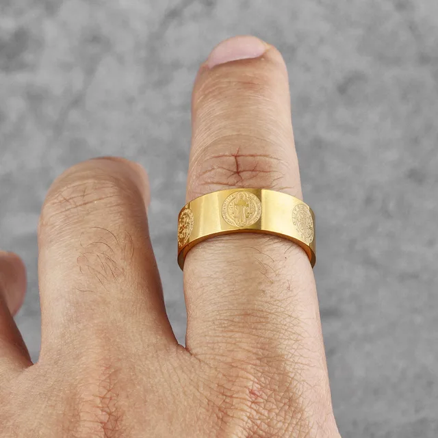Sculpt Rings™ Benedict Medal Gold Ring – Religious Jewelry Gift