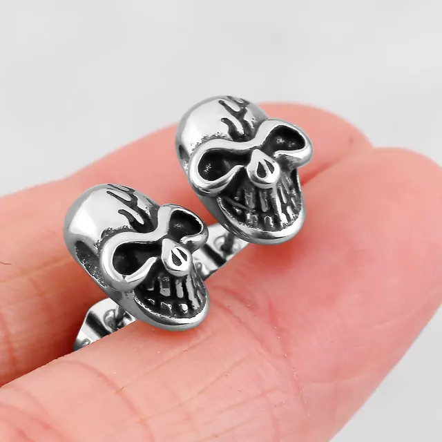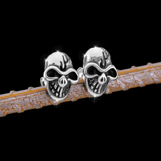 Viking Stainless Steel Vintage Skull Earrings – Nordic Men’s Amulet