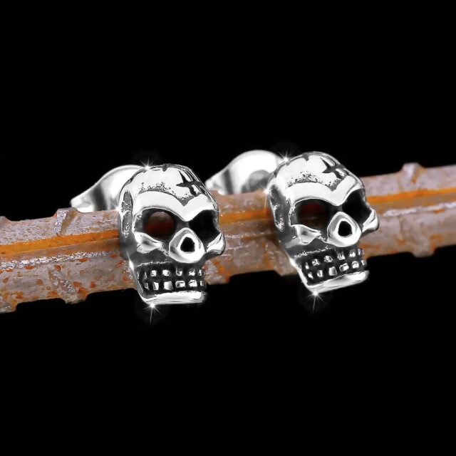 Vintage Viking Titanium Stainless Steel Skull Earrings – Nordic Men’s Amulet Fashion