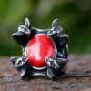 • Vibrant, eye-catching red stone centerpiece.