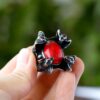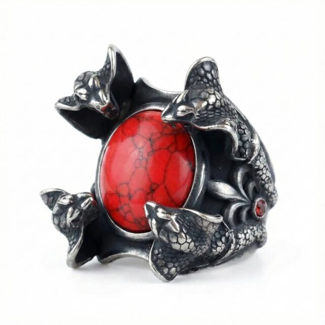 Unleash your inner power with the Serpent’s Embrace ring. This bold piece features intricately sculpted snakes safeguarding a vibrant red stone, perfect for adding an edgy, mythical touch to any outfit. Command attention with a symbol of transformation and allure.