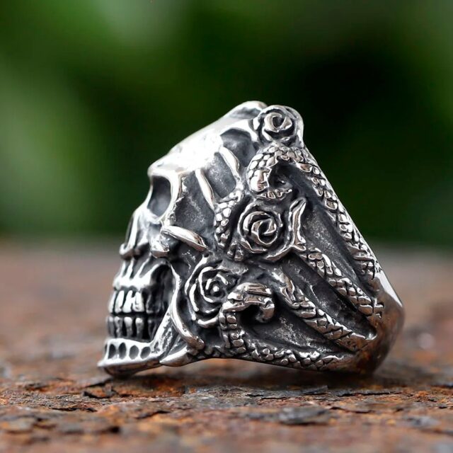 Sculpt Rings™ Skull & Roses Ring – Stainless Steel Biker Jewelry