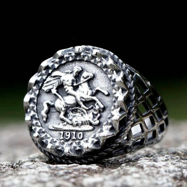 Sculpt Rings™ Vintage Coin Ring – 1910 St. George, Gothic Stainless Steel Signet