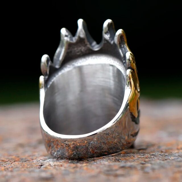 Sculpt Rings™ Fiery Skull Ring, Gothic Biker Jewelry for Men, Stainless Steel Band