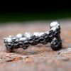 Embrace your inner rebel with the Sculpt Rings™ Skull Band. This striking stainless steel ring features a continuous chain of intricately detailed skulls, perfect for adding an edgy touch to any outfit. Its bold design makes it an ideal statement piece for bikers, rockers, or anyone with a taste for gothic jewelry.