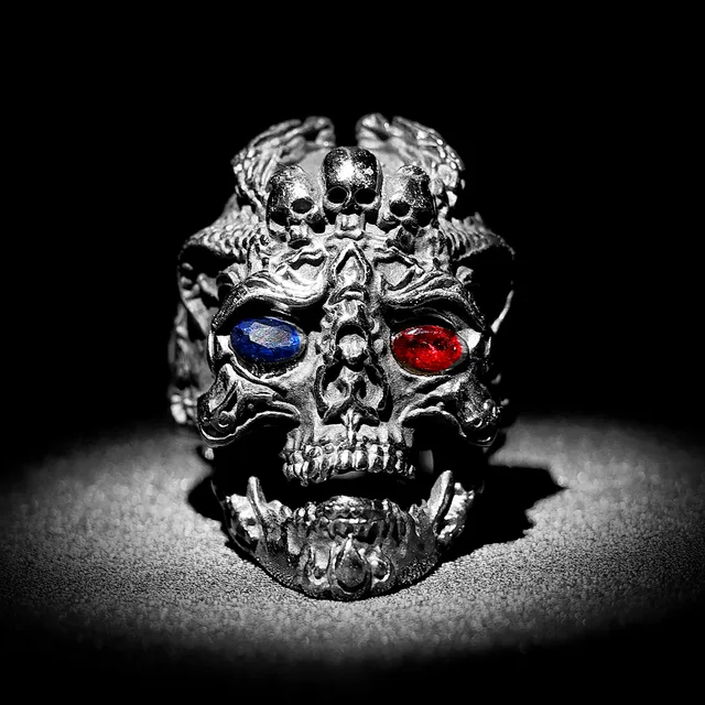 • Menacing red and blue cubic zirconia eyes that give it an imposing presence.