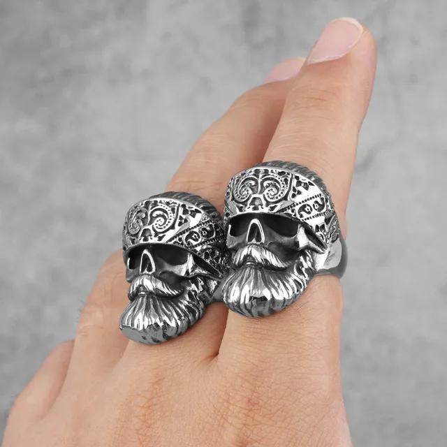 Sculpt Rings™ Bearded Skull King Ring – Stainless Steel Biker Jewelry