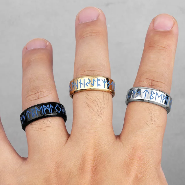 Viking Rune Spin Luminous Stainless Steel Mens Rings Simple Retro Unique For Male Boyfriend Jewelry Creativity Gift Wholesale