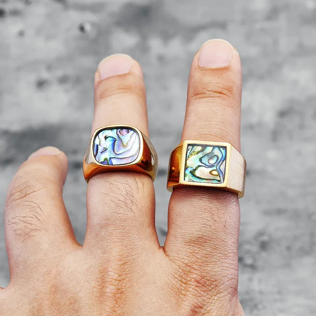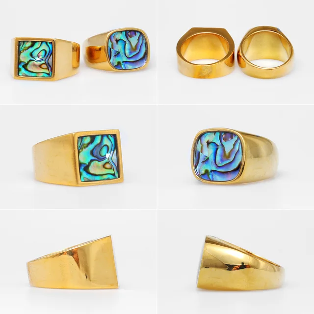 Embrace ocean beauty with the Sculpt Rings™ Abalone Shell Ring in 316L stainless steel. Featuring a genuine abalone shell inlay, available in gold square and round designs.