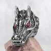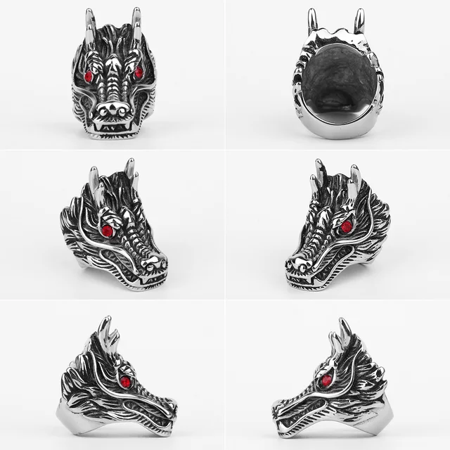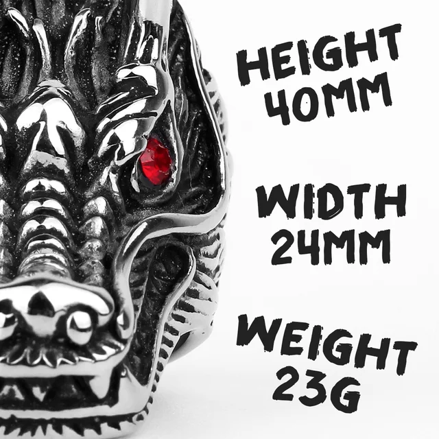 Unleash your inner beast with the Dragon Eye Stainless Steel Ring. This bold and intricately detailed ring embodies power and mystique, perfect for adding an edgy touch to any outfit. Make a statement and command attention with this striking piece of biker jewelry.