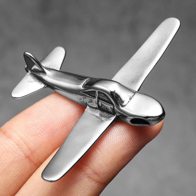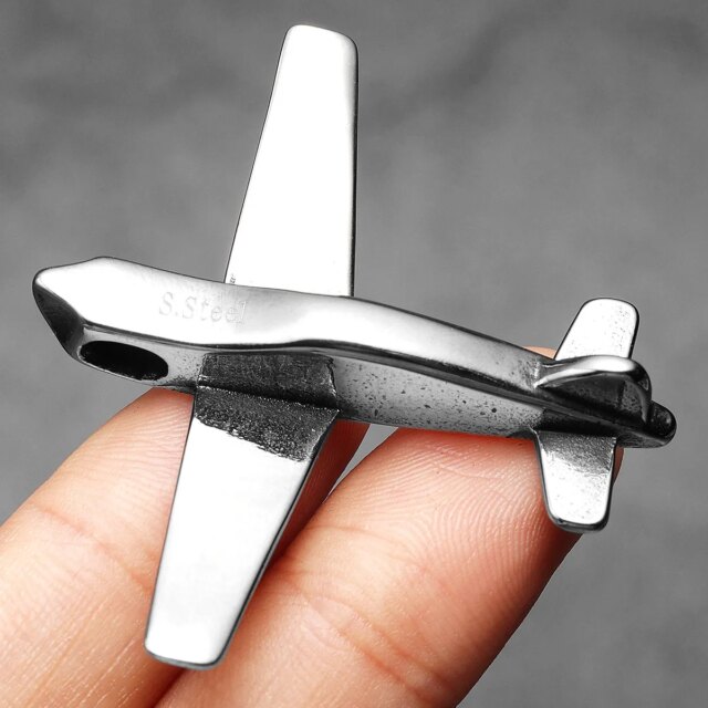 Airplane Pendant Necklace | Stainless Steel Fighter Plane Jewelry