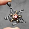 This gothic-style pendant showcases a detailed five-point star (pentacle) design with a central gemstone accent, crafted from high-quality stainless steel. With its mystical symbolism and rugged charm, it’s a perfect statement piece for lovers of dark fashion, punk, metal, or spiritual aesthetics.