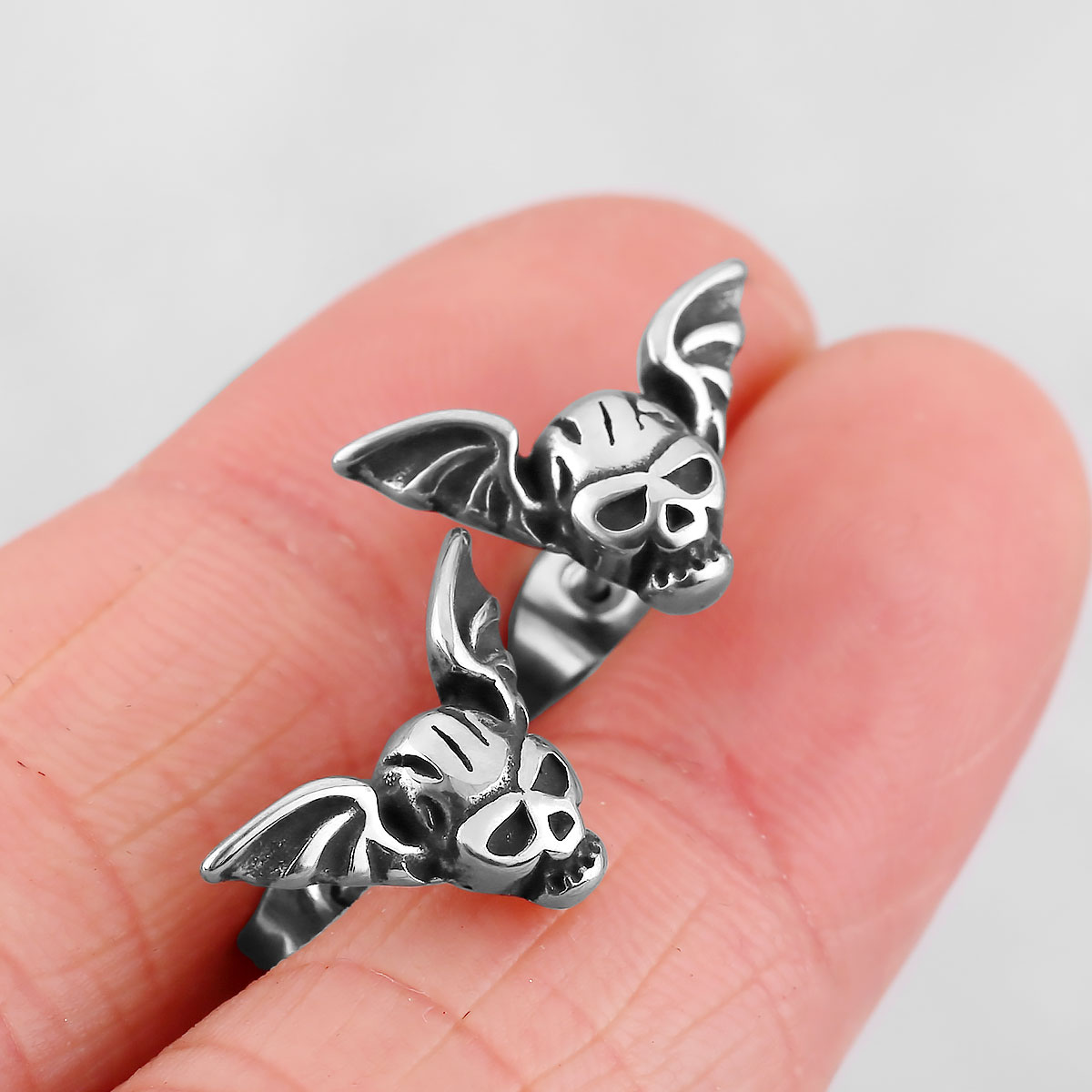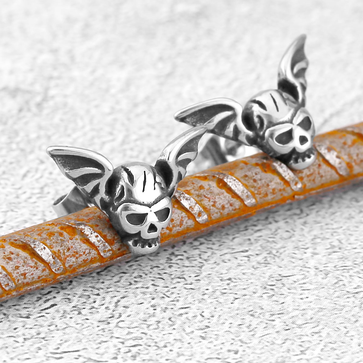 Popular Retro Viking Stainless Steel Bat Animal Skeleton Earrings Men’s Nordic Fashion Amulet Jewelry Studs Teen Gifts Wholesale