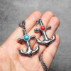 Bold anchor pendant with a turquoise centerpiece – crafted from durable stainless steel for a striking punk look.