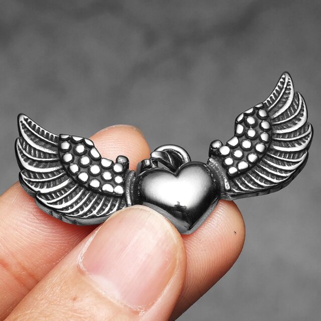 Sculpt Rings™ Angel Wings Heart Pendant Necklace – 316L Stainless Steel Symbolic Jewelry