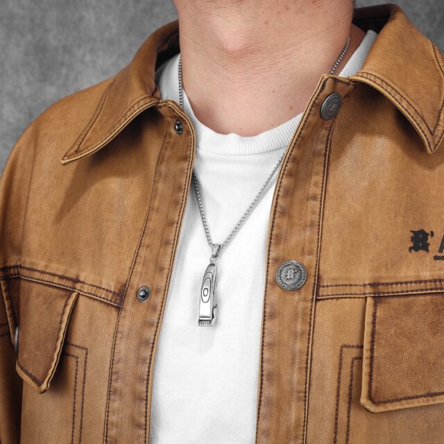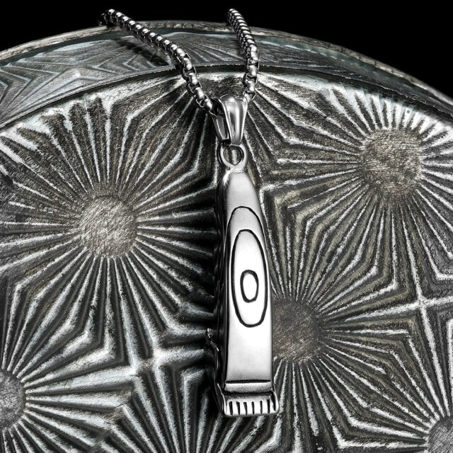 This sleek pendant pays tribute to the barber’s craft with a detailed electric shaver design. Its slim profile and stylish engravings make it the perfect piece for professionals who want to wear their passion with pride.