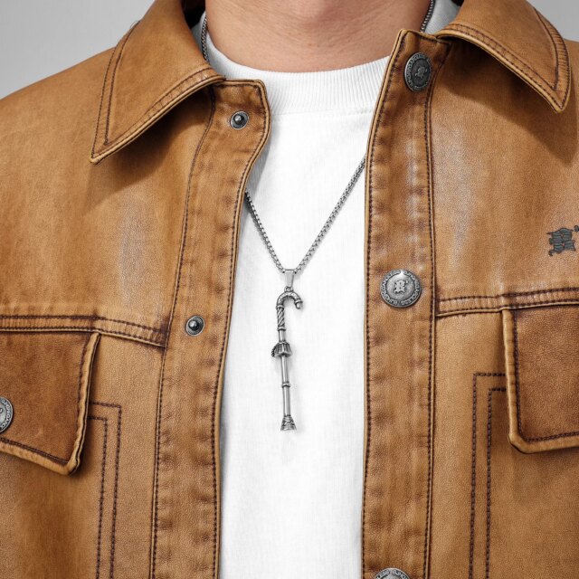 Bring holiday cheer with an edge! This sculpted candy cane pendant is crafted from durable stainless steel and adds festive flair to punk and hip hop outfits. A bold holiday twist for everyday wear or gifts.