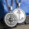 Double-sided compass and anchor pendant in stainless steel – 11g of symbolic style for direction and stability seekers.