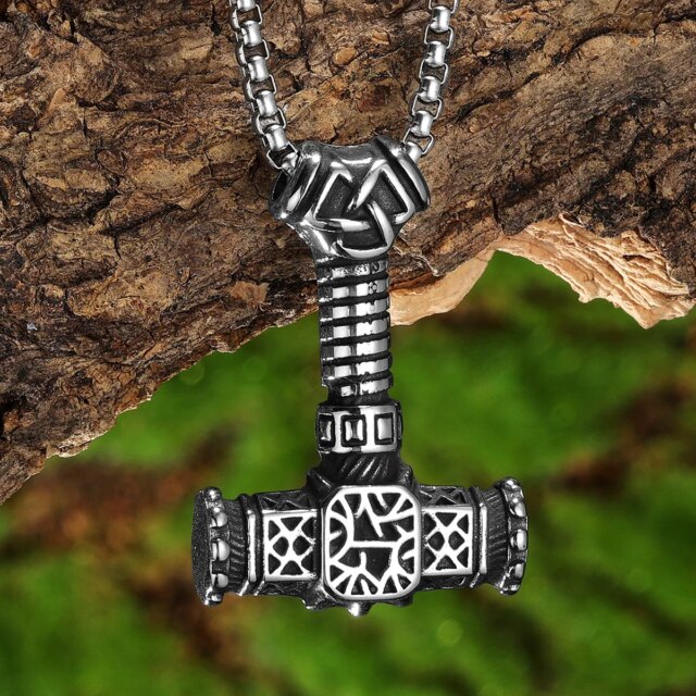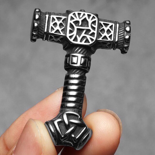 Sculpt Rings™ Grid-Carved Thor’s Hammer Pendant – 316L Stainless Steel Viking Mjölnir Necklace