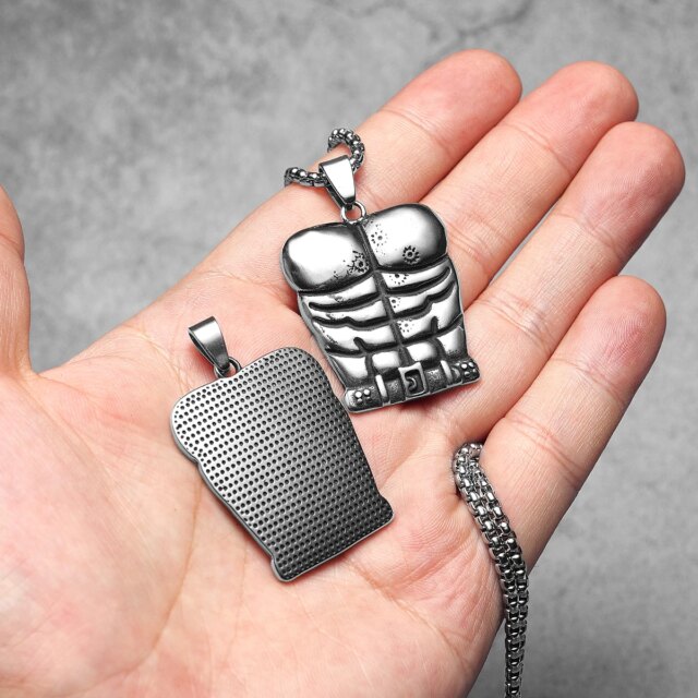 Six-pack abs in stainless steel – a bold pendant for gym lovers and bodybuilders who wear their strength with style.