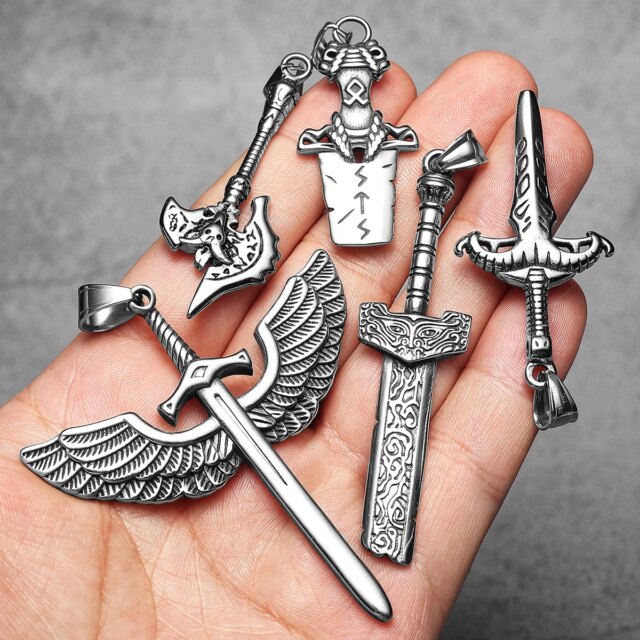 Sculpt Rings™ Horned Sword Pendant – Stainless Steel Fantasy Blade Necklace