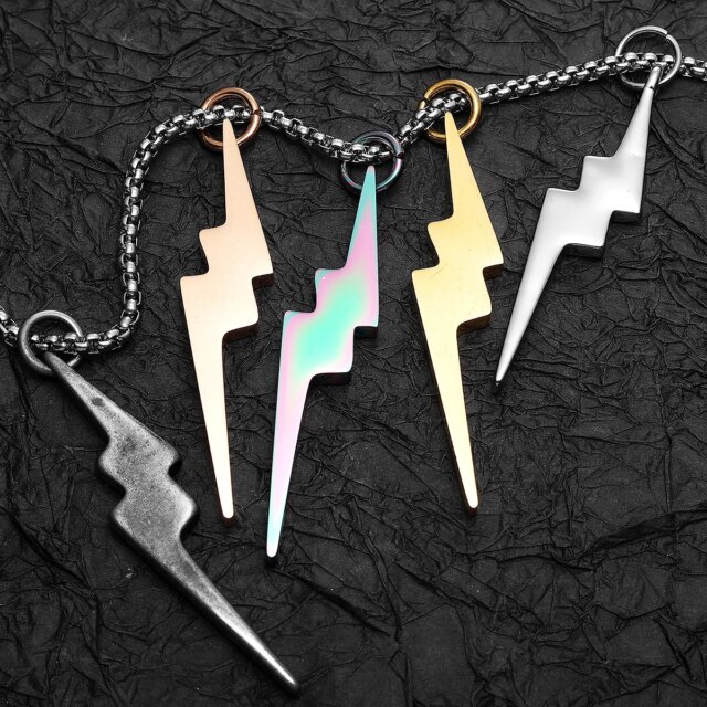 Strike with style! This bold lightning bolt pendant brings electric energy to your look. Made from stainless steel and available in multiple finishes, it’s a standout accessory for fans of punk, hip-hop, and edgy minimalist fashion.