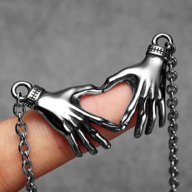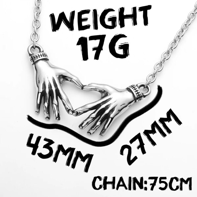 Express love and connection with this uniquely designed hand-shaped pendant. Crafted from high-quality 316L stainless steel, it features two sculpted hands forming a heart. Includes a 75cm chain – perfect for couples, friends, or personal style.