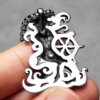 Dive into mystery and motion with this stunning mermaid pendant. Steering a ship’s rudder and crowned in waves, this design brings nautical fantasy to life. Crafted from stainless steel, it’s a statement of independence, grace, and ocean spirit.