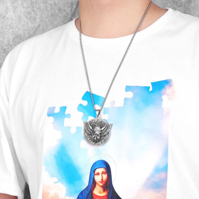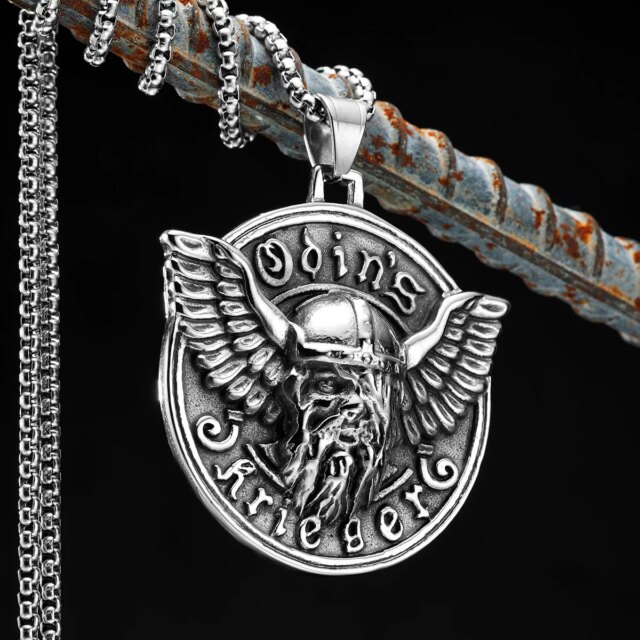 Massive Viking pendant featuring Odin’s winged warrior helmet design in solid stainless steel.