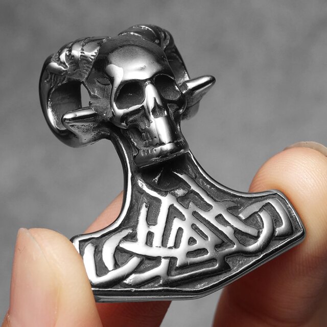 Sculpt Rings™ Ram Skull Thor’s Hammer Pendant – 316L Stainless Steel Gothic Viking Necklace
