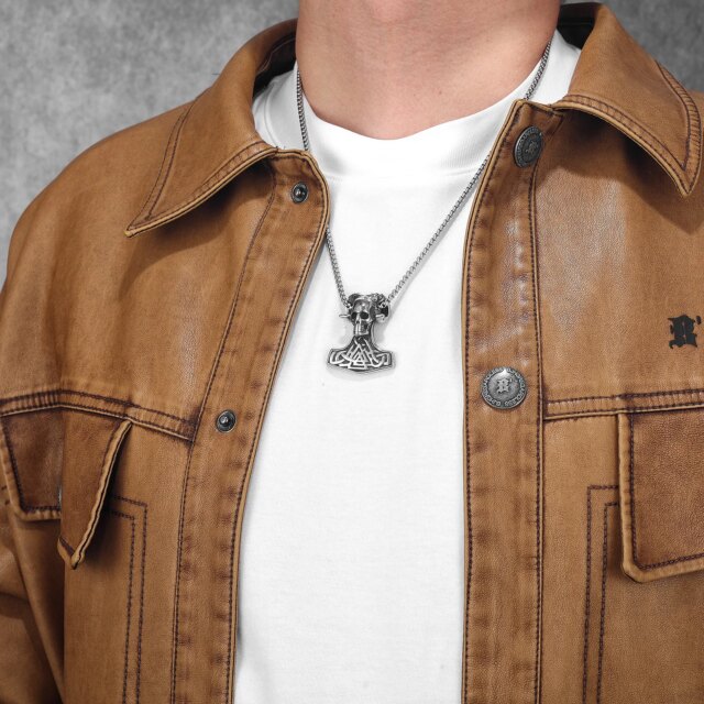 Unite Norse mythology with gothic symbolism in this bold Sculpt Rings™ Ram Skull Mjölnir Pendant. A menacing horned skull rests atop Thor’s hammer, complete with carved Norse runes along the hammerhead. Perfect for those who walk the path of rebellion, darkness, and ancient power.