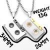 Retro-style cassette tape pendant in stainless steel. Lightweight and bold, perfect for music lovers and vintage fans.