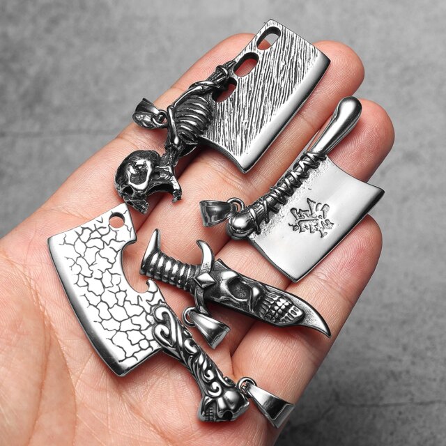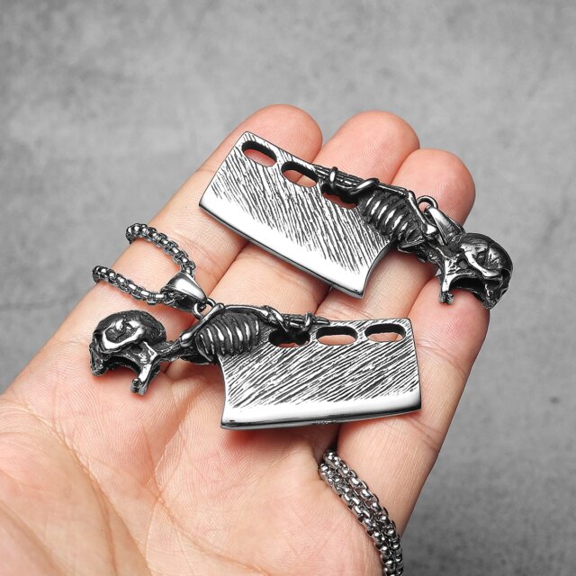 Sculpt Rings™ Skull Cleaver Pendant – Heavy Stainless Steel Skeleton Knife