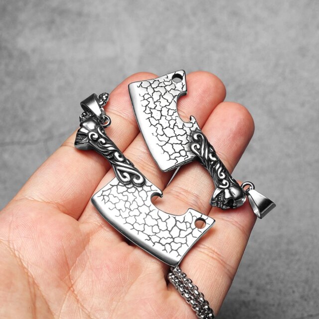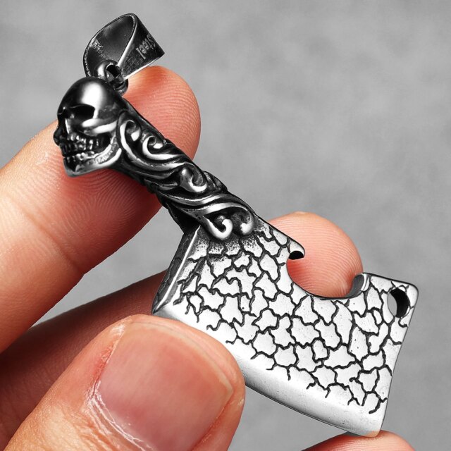 Cut through the ordinary with this skull cleaver pendant – a gothic masterpiece that doubles as a bottle opener. Its cracked steel design and sinister skull detail make it a standout accessory for bold personalities.