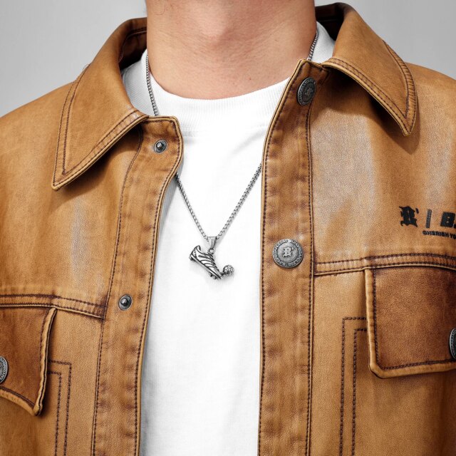 For the footballer at heart, this sporty necklace showcases a dynamic soccer shoe kicking a ball. Crafted from durable stainless steel, it’s the perfect statement piece for players, fans, and coaches alike.