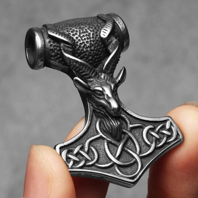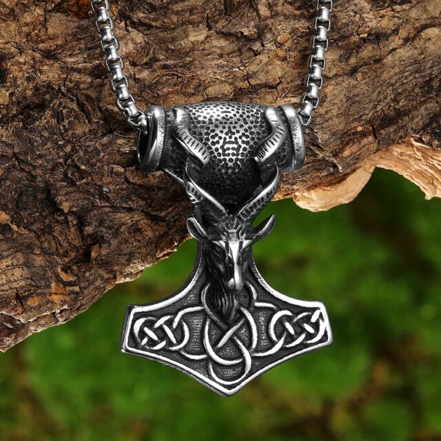 Sculpt Rings™ Thor’s Mount Tanngrisnir Pendant – 316L Stainless Steel Goat Head Viking Hammer Necklace