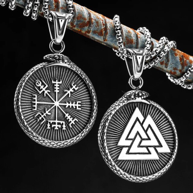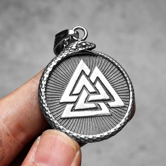 This symbolic pendant unites the power of Norse mythology with bold Viking craftsmanship. Featuring the Valknut triangle enclosed in a serpent circle, this design embodies strength, infinity, and ancient wisdom. Made from durable stainless steel, it’s a meaningful piece for anyone drawn to Norse heritage or symbolism.