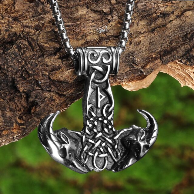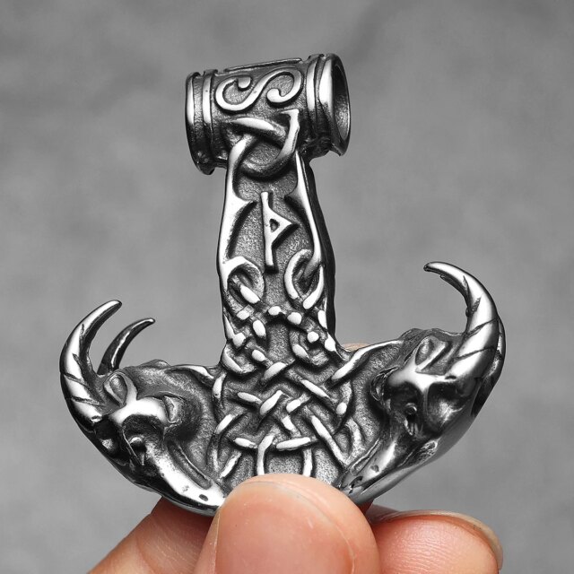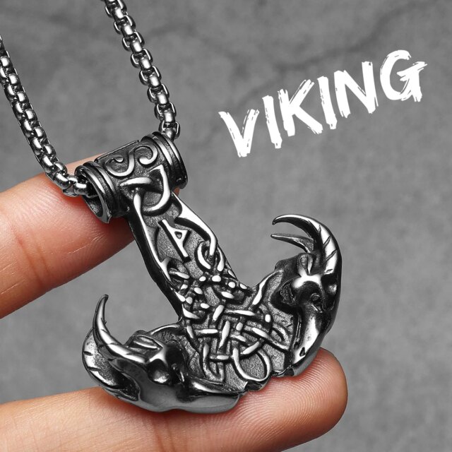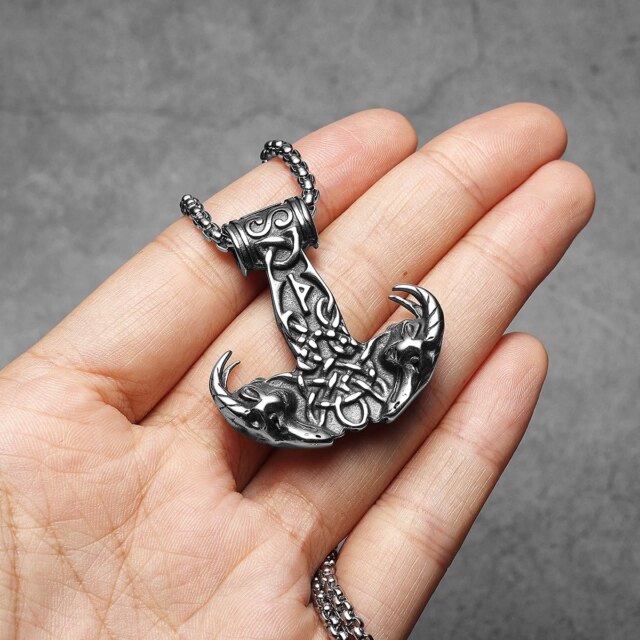 Sculpt Rings™ Viking Thor’s Mount Pendant – 316L Stainless Steel Norse Wolf Hammer Necklace
